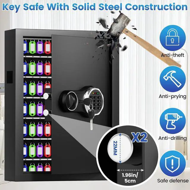 Keep Keys Organized: Wall key safe with numbered key hooks to keep your keys well organized, each of which is easy to access and keep track of thanks to the included key tags. Enjoy your freedom from looking for keys and can find them the moment they are needed