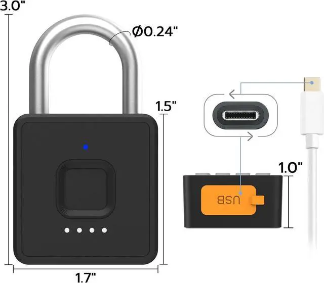 Type-C USB charging Smart gym padlock with battery indicators, low power consution and long standby. The rechargeae lithium battery can support 6 months of standby time and can be unlod more than 2000 times. When the battery is dead, the smart lock will remain lod, just plug in usb power or charge it with a portae power bank.