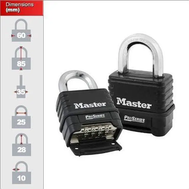 Product Features: ProSeries resettae combination locks are dgned for Commercial/Industrial applications Set-your-own 4-digit combination for convenience and security; 10, 000 possie combinations No reset tool required Large ergonomic dials with clusive ind feature permit operation with gloves, in low light or colete darkness Deadlocking mechanism protects against prying, shimming and rap attacks Shackle seal and dial dust cover protect internal coonents and dials for troue-free operation 2-1/4" (57mm) wide solid brass body for superior corrosion rstance 1-1/16" (28mm) octagonal boron-carbide shackle for cellent cut rstance