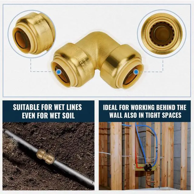 BUNDLE INCLUDES: Pushfit 3/4 Inch Straight Coupling (5 PCS); Pushfit 3/4 Inch 90 Degree Elbow (5 PCS); Pushfit 3/4 Inch Tee (2 PCS); 3/4 Inch Disconnect Clip (1 PC).