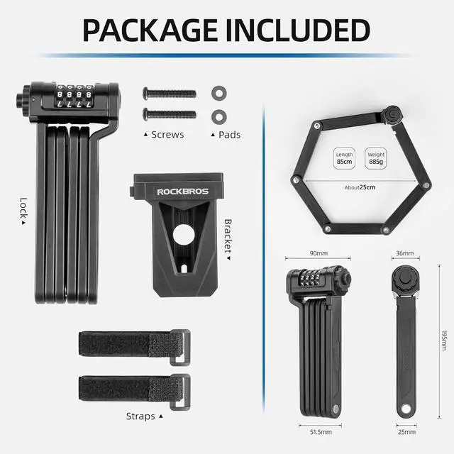 COACT FOLDING LOCK: The lock is foldae for storage, saving more space in the frame, and comes with a storage brat that allows the lock to be attached to the bike with screws or two hook-and-loop straps.
