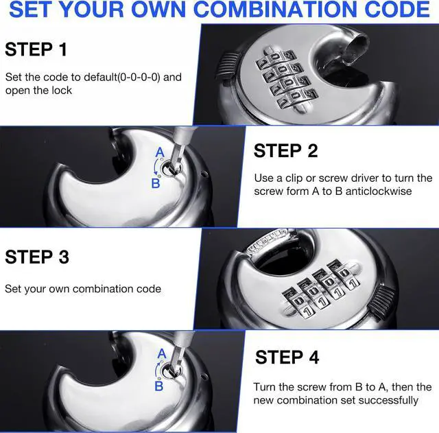 Features: Combination lock with 4 digital dgn: The combination lock is dgned with a four-digit code, which is more secure than a 3-digit code, you can set your own code as needed by following the instructions and easy to remember it. You no longer need to worry about finding a key.
