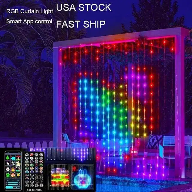 wire: 9.8F t. Crafted from premium materials. Setting up your indoor & outdoor Smart Curtain Lights is a breeze. Sily hang them up with the built in hooks, plug them in, and use the remote or app to adjust the settings. This IP65 waterproof curtain lights are ideal for decorating bedrooms, living rooms, walls, backdrops, patios, garden, and more, adding a magical touch to any setting. (Note: The controller and adapter are not waterproof, please seal them for outdoor use