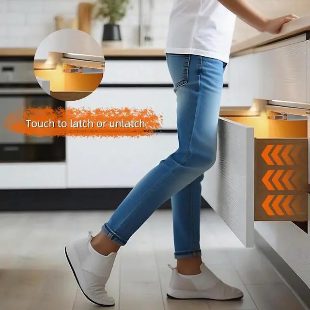 Convenient to Use: Think about how many times you've had your hands full and needed quick access to open the cabinet door to take things? Effortlessly open and close your cabinets with this heavy duty cabinet push latch, sily press the door to latch or unlatch, eliminating the need for handles or knobs. Ideal for cabinet doors and drawers witt handles in home, RV, boat, and any other places.
