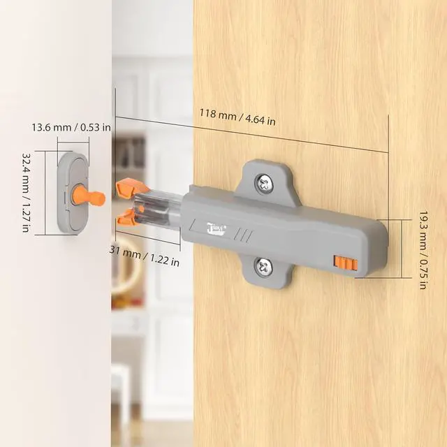 Install: This push lock integrated molding, only the two sides of the screw to fix, and the plat of latches come with adhve, make the position and installation so much easier. No need to disasseme to adjust, adjust 0 - 6mm to fit different door gap size by dialing through the gear key. Whether you're a DIY enthusiast or a professional carpenter, this cabinet push latch is incrediy easy to install.