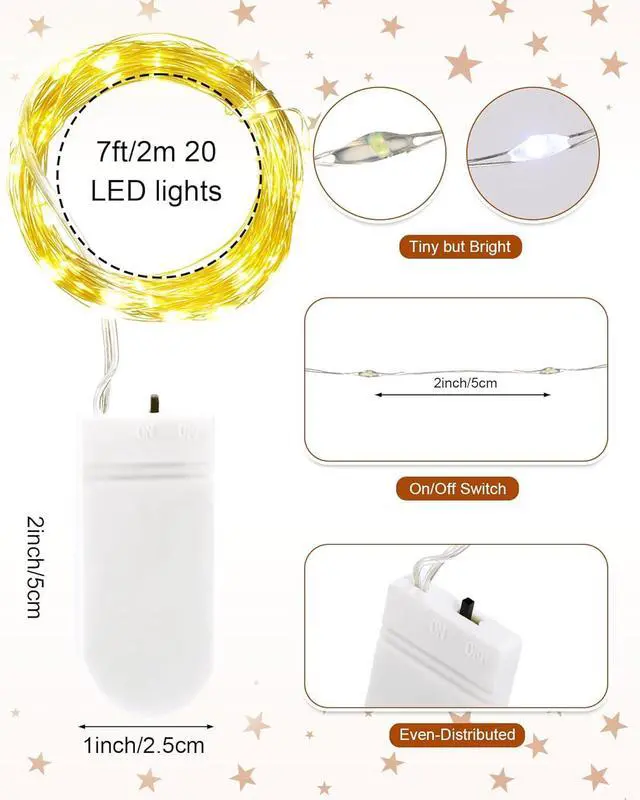 Widely Application: the LED fairy string lights are suitae for wedding, birthday party, Halloween, Chrias, New Year, evening party, or decorating your bedroom, kids room, dorm, Mason Jars, clear umbrella, garland, or dgning any other lighting projects