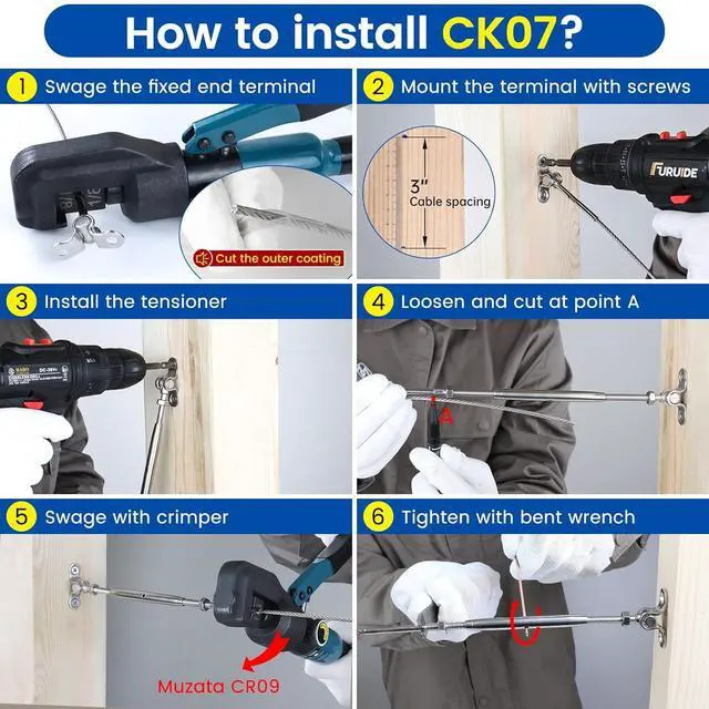 Easy to install: This cae railing kit does not require any pre-drilling and can be sily installed by tightening the screws. The wide adjustae range makes installation easier, especially for beginners, who might not cut the cae to the precise length. You can use a steel rod, like an allen wrench (not included), alongside the bent wrench to assist in tightening the turnbuckle for a labor-saving installation. Apply for both wood posts and wood posts with sleeves