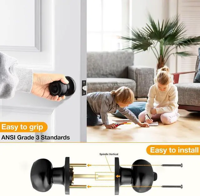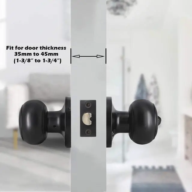 Privacy functionNo key. Ideal for bedroom, bathroom, interior door requiring privacy. From interior, turn thumb-turn button to lock. Use any thin tool/penny/screwdriver to push through hole outside for emergency release