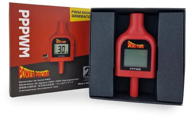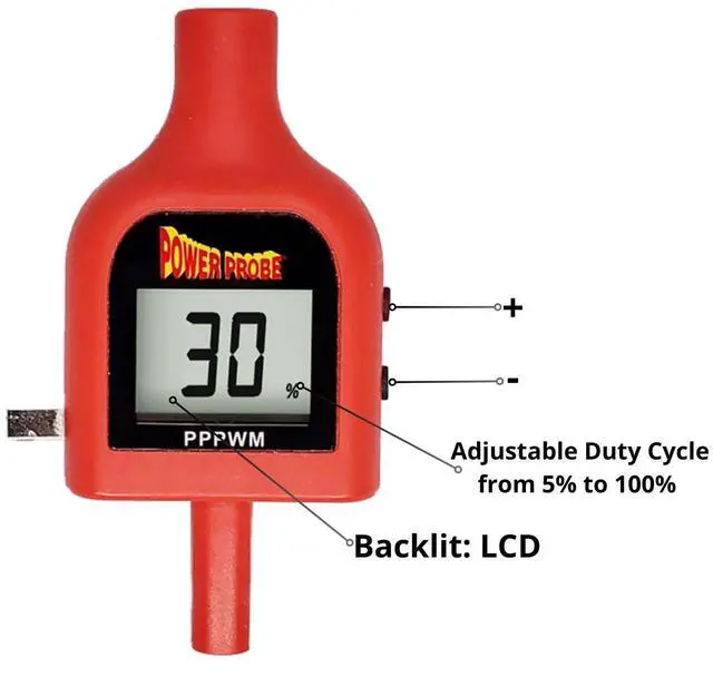The PWM Adapter Tip turns every circuit tester into a pulse width measurement tool. The pulse width modulation tip allows for easy detection of any circuit fan electrical issues. The adapter is for 12V to 24V use with a 10A max of continuious output. The Duty Cycle is easily adjustae with side buttons from 5% to 100%. The adapter fits all circuit testers with a 4mm banana jack.