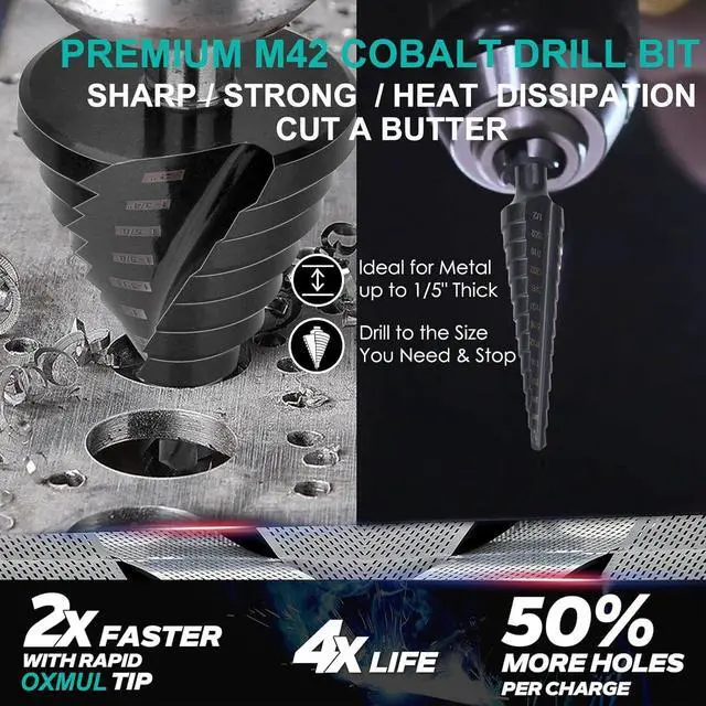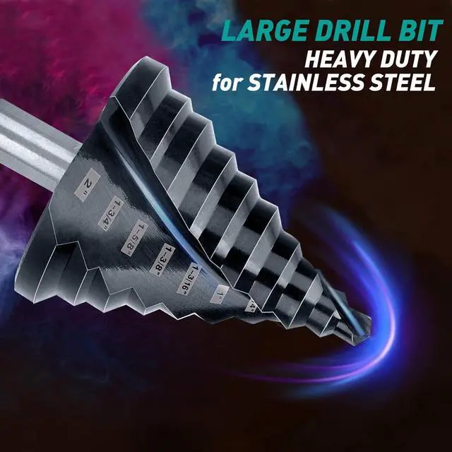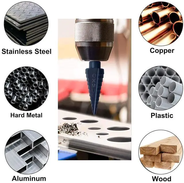 A Work HorseThis spiral shaped step bit is a work horse. Easily drilled through the steel platform of your zero-turn mower, cold rolled steel, lug bolt, old rack, iron rotors, tractor but, washer, heavy steel loader but was made for a tractor, hydroponics tubing, water pipe, cabinet
