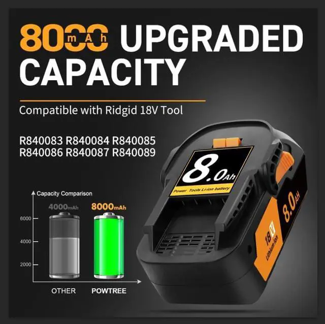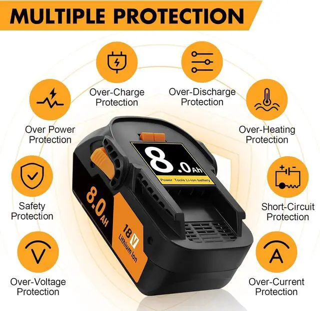 [Safety Protection] Ridgid battery replacements feature multiple protections: overcharge, over-discharge, overheating, overvoltage, short-circuit, overcurrent, and power supply protection. They are a popular choice and a trusted choice