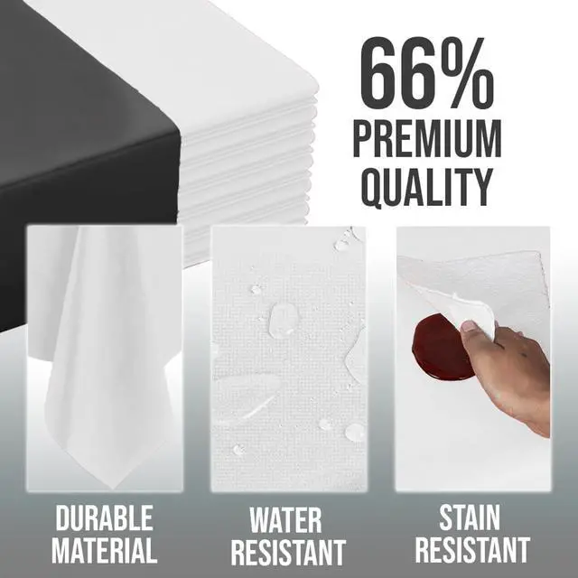 For All Occasions: From weddings and birthdays to holidays and barbecues, these White outdoor table covers for parties are made to fit any event. Stock up on reliable bulk plastic tablecloths round for effortless style and protection. A party must-have for those needing durable table cloth bulk table covers for 8 foot tables.