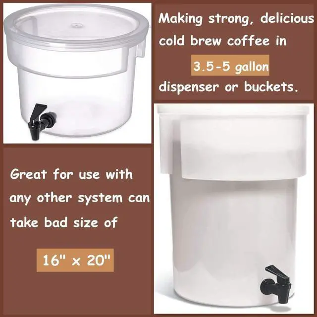 NATURAL STURDY MARTERIAL - The cold brew filter pack are made from natural commercially compostable fine fiber. It can remove all the fines impurities, oils, and bitter taste from coffee. And also thicker and stronger than the competition. You can use our fine mesh brewing socks along with existing cold brew coffee maker to reduce sludge and coarse grounds escaping. Great for use with commercial cold brew system, or any other coffee brewing system can take bag size of 16" x 20".