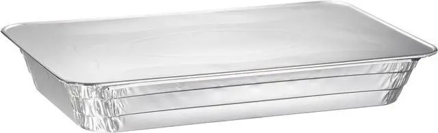 Maintains Temperatures - Also available with 45-gauge aluminum foil lids. Protect your dishes and maintain their temperatures with these durable crimping lids. Our flat pan lids also allow dishes to be stacked for transit.