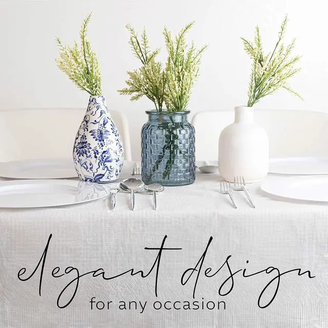 Disposable Paper & Plastic 3 Ply Tablecover 54'' x 108'' Is An Elegant DisposableWhite Paper Tablecloth With Plastic Back For Extra Protection & Absorbent With A Elegante Design Great For Partys, Weddings, Pinnics, Birthdays, And Every Ocassion And Every Day Use