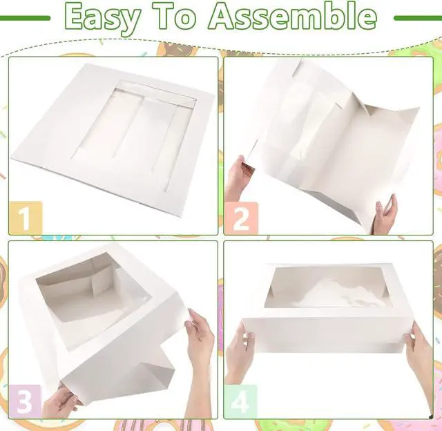 Ideal for Baking Lovers: the large bakery boxes with window are suitable for people who are enthusiasts of baking, nice for showing your bakeries, such as bread, ghnuts, cakes, pastries, cookies, trifles, muffins, cupcakes, pies and so on