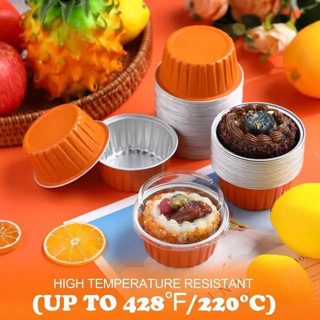 Our aluminum muffin cups are made of quality material, safe to use, can withstand high temperatures. Each cup is attached with a lid to keep your food from leakage and tipping.