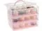 The 3-Tier Cupcake Carrier is an elegant and practical accessory for bakers and dessert enthusiasts. This pink, lightweight cupcake holder is crafted from durable plastic and designed to securely transport up to 36 cupcakes. As the holiday season approaches, this carrier is an essential tool for presenting homemade treats at festive ings, ensuring that cupcakes and other baked goods remain fresh and intact. Ideal for both professional and home bakers, this versatile cupcake carrier is perfect for transporting a variety of desserts, including cookies and pastries. The reversible and removable trays provide flexibility, with one side molded for cupcakes and the other flat for larger pastries, functioning effectively as both a cookie container and a 3-tier cupcake storage solution. Designed with an ergonomic handle, this cupcake carrying container is easy to transport to family ings or office celebrations. The robust snap lock lid ensures an airtight seal, maintaining the freshness of the desserts inside. Constructed from dishwasher-safe materials, the carrier is easy to clean, whether by hand or in a dishwasher, making it a convenient choice for frequent use. The package includes one standard 3-tiered cupcake container.