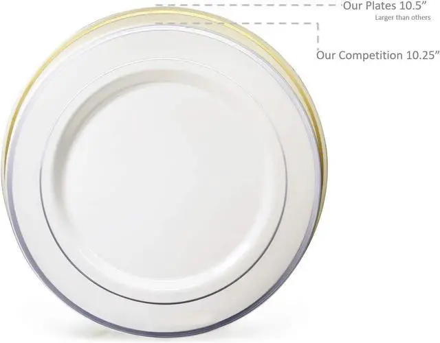 • 240 pack includes: 120 pieces 10.5'' Dinner Plates + 120 pieces 6.25'' Dessert/ Cake Plates