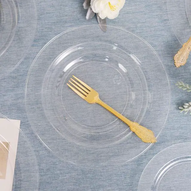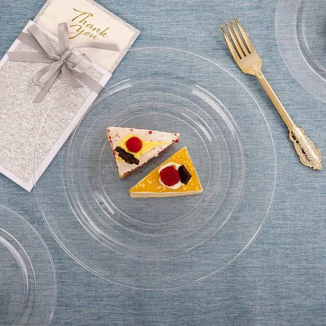 SUITABLE FOR ALL OCCASIONS - These disposable clear plates are perfect for all your formal and informal activities. For example, birthday parties, business banquets, engagement parties, weddings, festivals, barbecues, baby showers, high-end dining, family dinners, etc., add flavor to various events. After use, you can throw these disposable clear plastic plates away directly, free your hands, save precious time for a good party, and enjoy the good time.