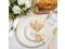 EVENT EASIER: Gold plastic silverware are packed in white napkins, reduce your time for folding the napkins. Gold disposable cups are protected in a clean box, you dont need to clear up