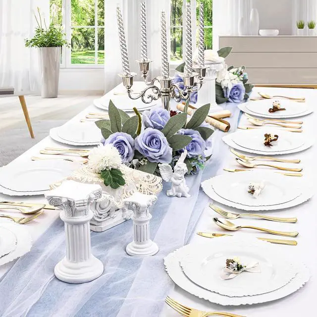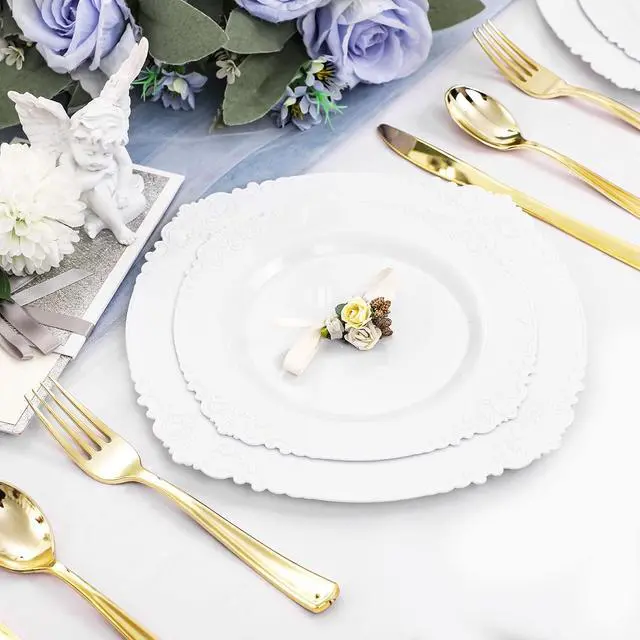 Suitable for Various Occasions - Our simple and elegant party plates are suitable for dinner parties, holidays, family dinners and other activities. With its design and color match, our disposable plates are great choice for all kinds of wedding cakes, salads, desserts and snacks. It's definitely worth it.