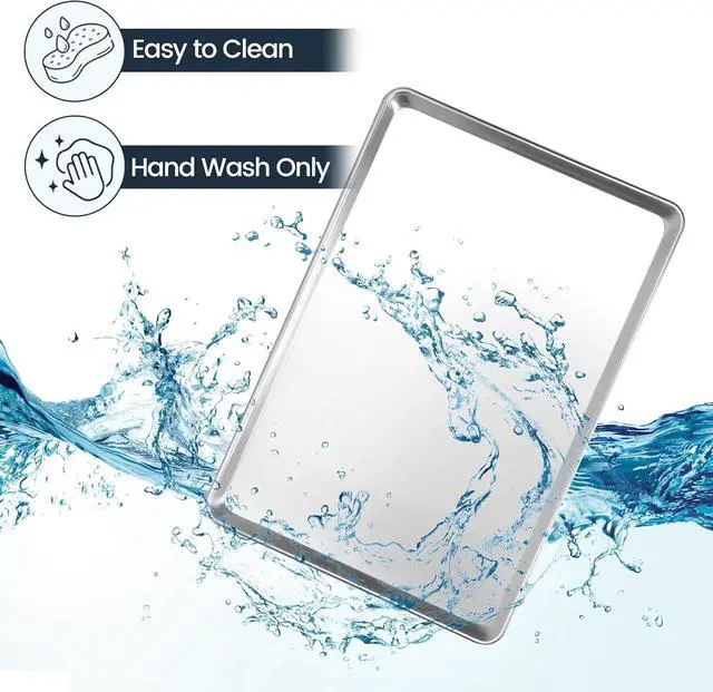 Easy to Clean: Rectangular aluminum non-stick baking sheet holds food, prevents food juices from flowing everywhere, and keeps the oven tidy. HAND WASH ONLY as discoloration will occur due to the cleaning agents used in automatic dishwasher detergent