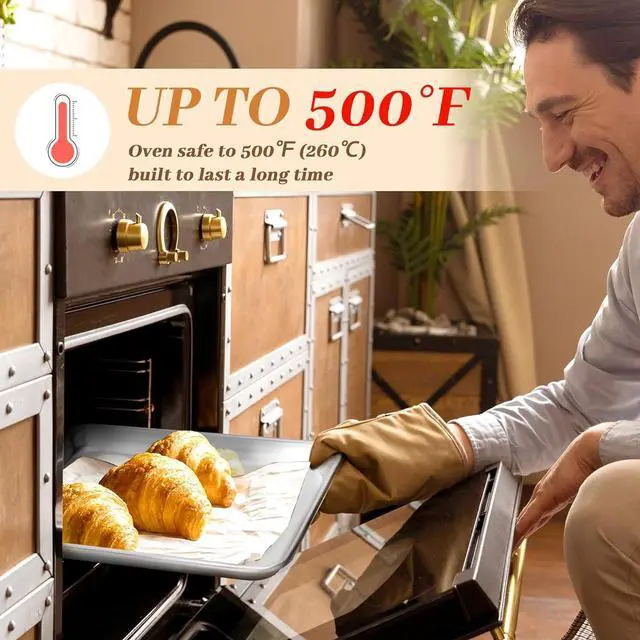 Rimmed Edges: Featuring rolled rimmed edges, our baking sheet offers d strength and durability. Helps to prevent warping even at high temperatures