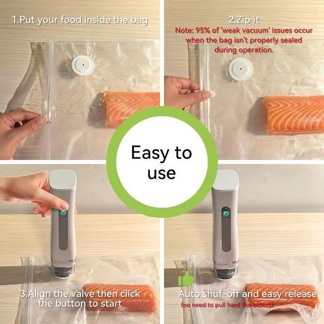 Reusable Zip Seal Freezer Bags: Formulated with BPA-free material, included vacuum sealer bags for food are washable and dishwasher safe, leaving a smaller carbon footprint than disposable plastic rolls and huge waste. Use the clip to help seal the bag. Extended Freshness with no spoilage worries