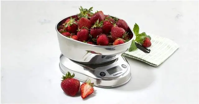 Features: Includes removable stainless steel measuring bowl/cover|Durable tempered glass weighing platform|Large illuminated LCD reat|Touchpad buttons and dishwasher-safe bowl for easy cleaning|Weight capacity: 11 lbs/5 kg|AA batteries included