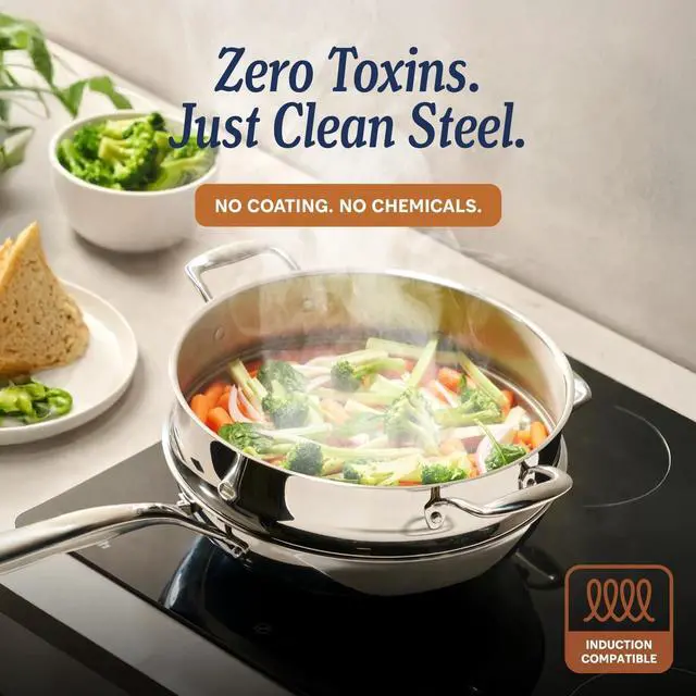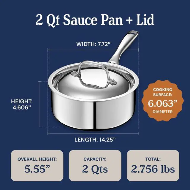 5-Ply Stainless Steel 2-Quart Sauce Pan with Lid - Induction Compatible, Oven Safe 800°F - Non-Toxic, No Coatings - Even Heating, Won't Warp - Built to Last Generations