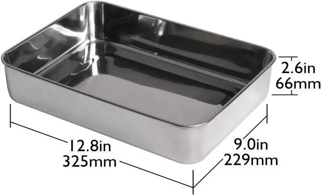 This deep Stainless Steel Covered Cake Pan is all stainless steel including the lid. It is a favorite for many kitchen cooks who bake vegetables, meals, cakes, brownies and other treats.