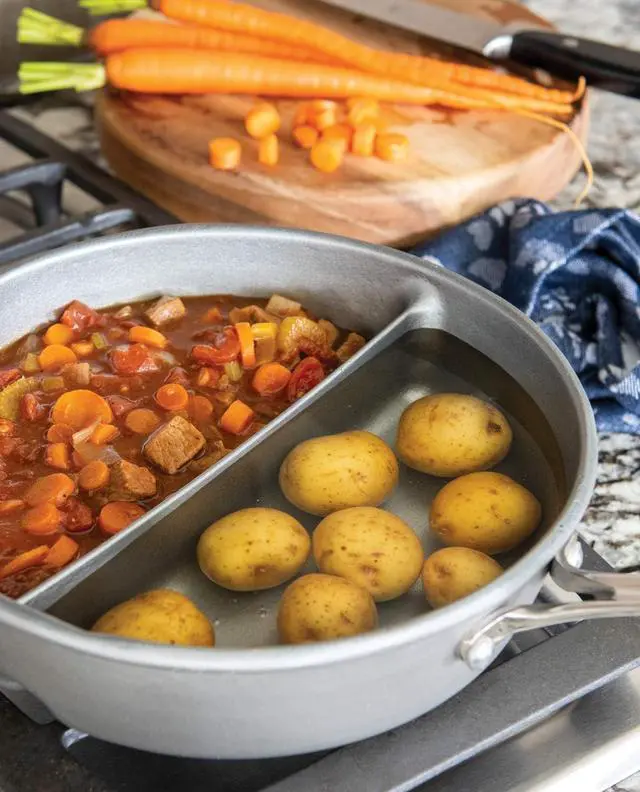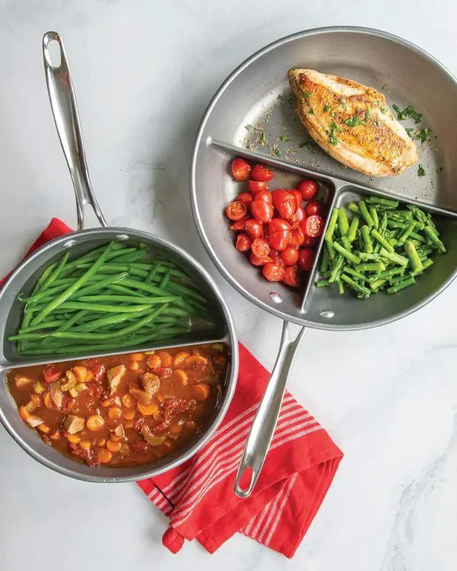Do more with less! Cook several foods at once using just one pan. Our 2-in-1 Divided Sauce Pan is perfect for saving time with meal prepping and eliminating cleanup of multiple pans.