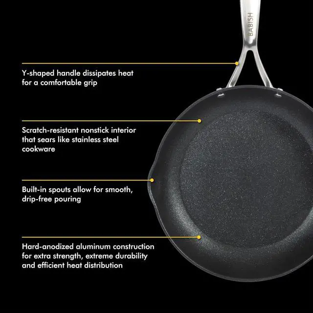 The 2-piece ActivBond Nonstick Hard-anodized Aluminum Frying Pan Set offers an tive nonstick capability to raise the bar and quality of everyday dishes. Heated at 30, 000°F, the ActivBond technology seals the interlocking layers of hard-anodized aluminum and triple-layer nonstick coating for superior durability and easy-release finish. Made without PFOA, lead, or cadmium, our scratch-resistant coating sears meat better than any stainless steel cookware and cleans up easily after every use. Constructed from a special process to make a more durable structure, both pans are made from hard-anodized aluminum for extra strength, long-lasting performance, and efficient heat distribution. Riveted stainless steel handles feature a Y-shaped design to dissipate heat better, providing a stronger and safer grip. Safe to use in the oven up to 500°F and on all kinds of stovetops, this frying pan set allows home chefs to experiment, create, and master signature recipes and restaurant-quality dishes with a homemade flair. Dishwasher safe, hand wash recommended.