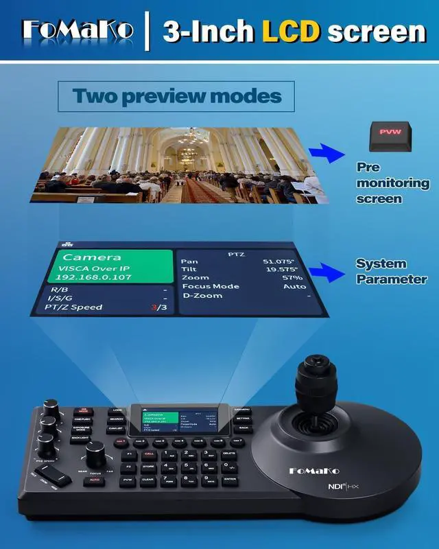 Multi-Camera Live streaming. Ethernet IP connection control the IP Streaming PTZ Cameras in your LAN only by one network cable. A Controller for Multi-Camera and Multi-angle control Video Production and Live Streaming.
