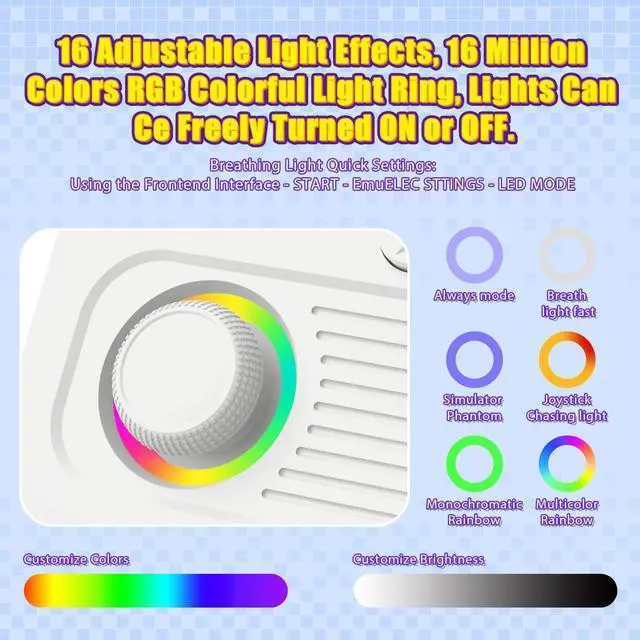 High-Precision Joystick and Customizable RGB LightingThe R36T offers a high-precision joystick for accurate gameplay and 16 million color RGB joystick lighting, 16 Adjustable Light Effects, Lights Can Ce Freely Turned ON or OFF.