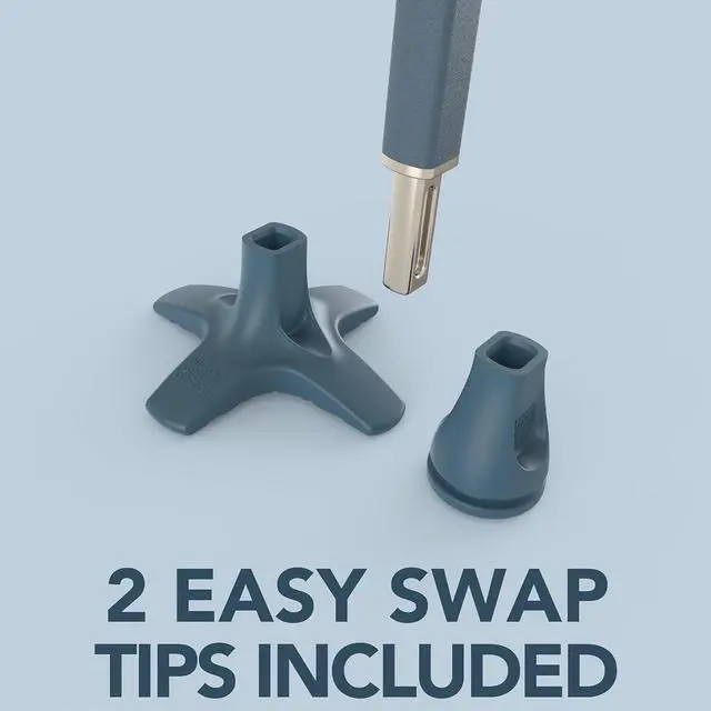 2 TIPS INCLUDED - Our walking stick comes with 2 tips with an easy swap, tool free change. Our X-Tip provides self-standing functionality, and our Slim Tip offers an ultra-slim profile. Whether it's around the house, walking in the park, travelling on holiday or something tougher our walking cane has your everyday covered.