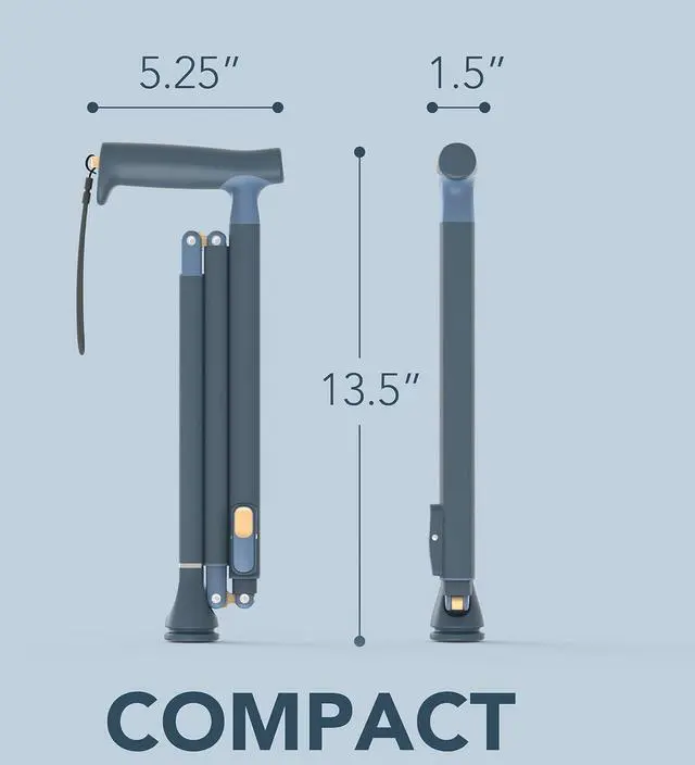 The Quick Fold cane proves that people can expect style, safety, value and convenience in the home healthcare category. The Quick Fold cane features a simple, tive fold mechanism that provides easy, fast, and compact folding so you can always keep the Quick Fold cane with you and pull it out just when you need it. The Quick Fold cane is lightweight, height adjusts easily and stores compactly due to a unique square aluminum tube and comes in four great colors. The Quick Fold Grip is very comfortable in your hands and provides d functionality like its ease of hanging from tables or your arm.