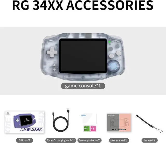 RG34XX 3500mAH Battery, 7 Hours Battery LifeEnjoy up to 7 hours of gaming with the RG34XX's 3500mAh polymer lithium battery. It supports 5V/ 1.5A charging and is C2C charger compatible. The console supports 2.4G wireless, wired, and Bluetooth controller connections, HD TV connection, vibration motor, Wi-Fi online multiplayer, and streaming.