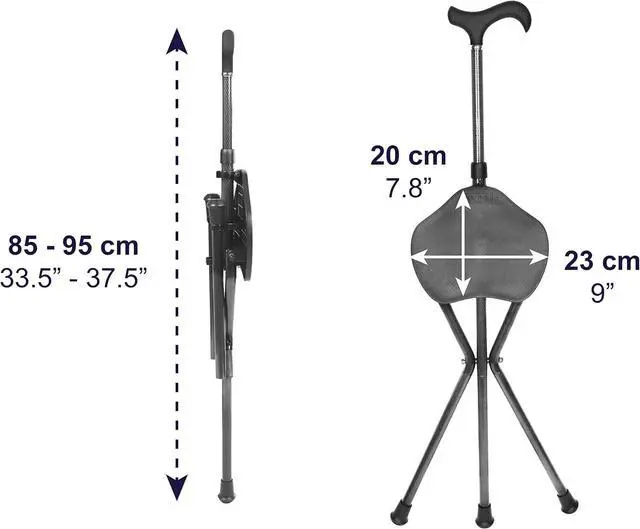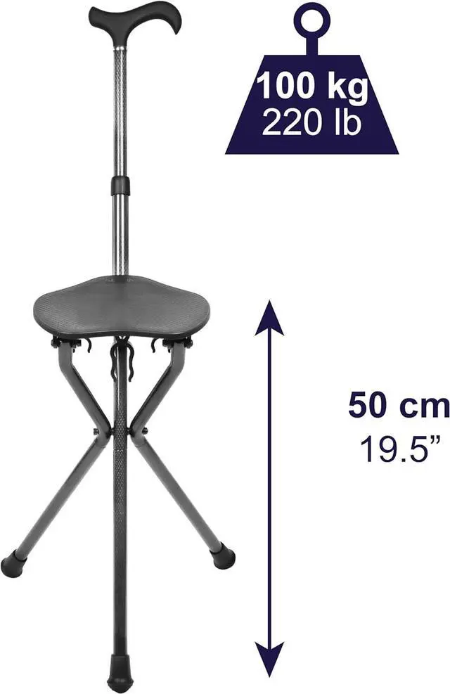 HIGH QUALITY: Made of carbon fiber, this walking stick with chair is lightweight ( 1.8 lbs) and tough, perfect for everyday use. Its high quality materials, the three-leg structure and its antislip ferrules give greater comfort and safety to the user when sitting down.