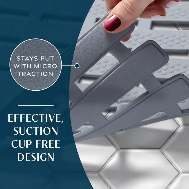 Reliable Non-Slip Protection Micro-traction texture pads grip across grout lines, uneven, porous surfaces, pebble tile, and more. The suction cup free design simply stays where you lay it.