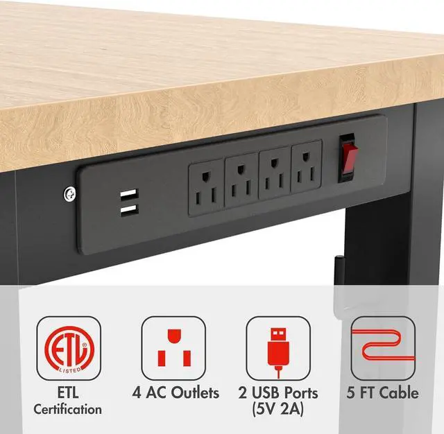 ETL Certification Power Strip: We fitted a power outlet for the workbench. Convenient for you to use a variety of power tools and lamps. There are 4 AC Outlets and 2 USB-A ports on the power strip. And the socket is ETL certified for safety and durability
