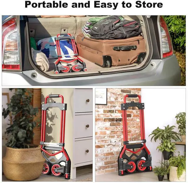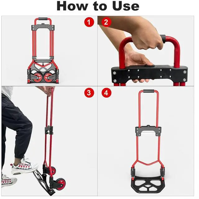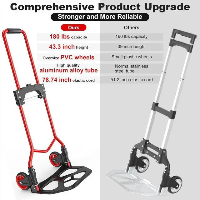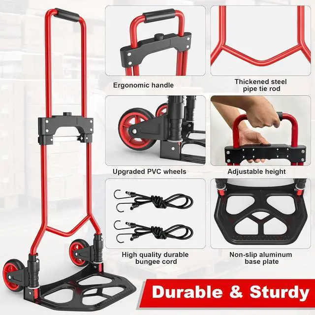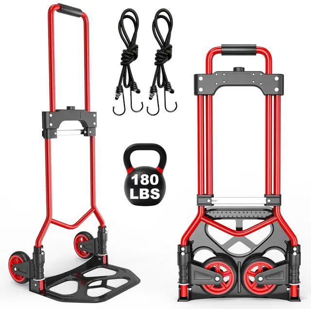 Folding Hand Truck Dolly Cart, 180LBS Portable Aluminum Hand Truck Foldable Dolly with Telescoping Handle and Elastic Cord for Luggage, Boxes, Functionality Folding Dolly for Home, Moving, Black Red