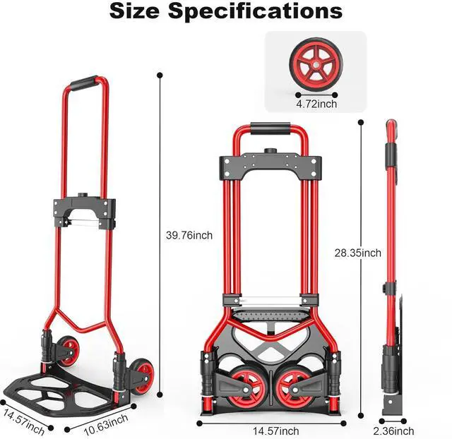 Store: No assembly is required. This hand cart weighs only 7.5 pounds and folds flat to a space-saving size of 28.35" x 14.57" x 2" (plate size: 14.57" x 10.63" ). It fits effortlessly under beds, in car trunks, inside storage rooms, or even in wardrobes, perfectly balancing portability and practicality for hassle-free storage.