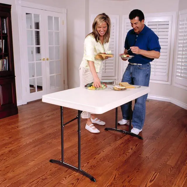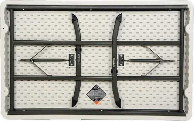 Features a 48 in. x 30 in. molded tabletop (almond) with a round folding frame (bronze). 10-year limited. 4-Foot Commercial Folding Tables are constructed of high-density polyethylene and are stronger, lighter and more durable than wood. They will not crack, chip or peel, and are built for indoor and outdoor use. The patented steel frame design provides a sturdy foundation and is protected with a powder-coated, weather-resistant finish. Perfect for home or office use, Folding Tables exceed challenging BIFMA standards and are backed by a ten-year.