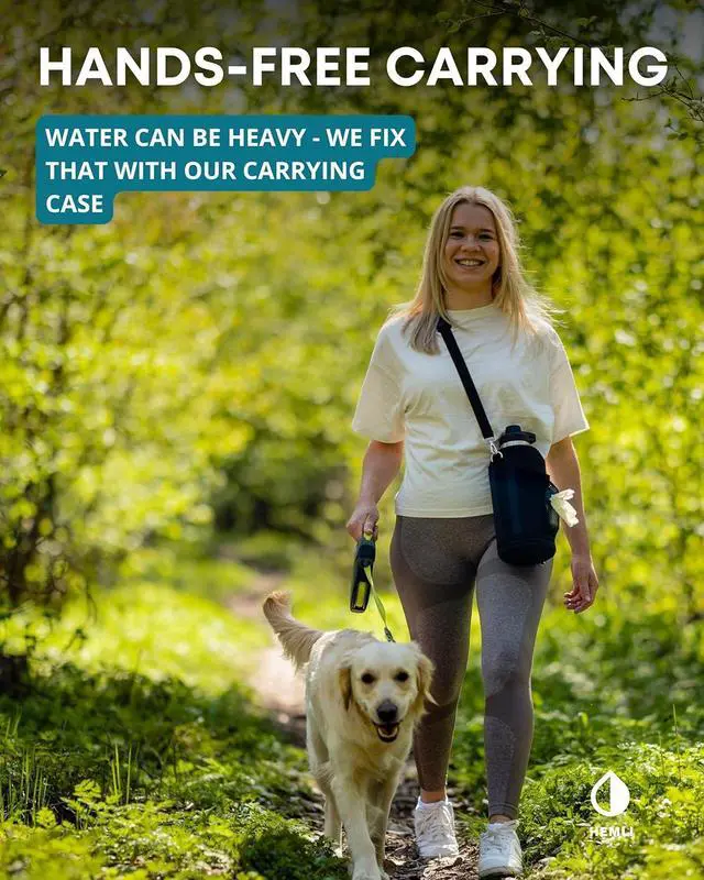 Mesh CompartmenChug Lid Included - the 64 oz capacity will be enough water for you and your dog to stay hydrated for the entire walk. The shatter-proof stainless steel construction makes this an excellent option for dog camping gear, or as a dog travel accessory. - a mesh compartment on the side of the carrying case is a perfect place to store your dog waste bags, phone, wallet, or keys. The 64 oz size, carrying case, and two compartments make this the perfect dog hiking water bottle.