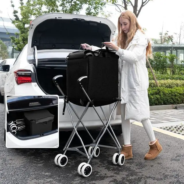 Tool-free Installation: Most of this shopping cart is pre-assembled. All you need to do is pop in 2 front wheels. Whats more, the L-shaped handles are convenient to grip for easy pushing.