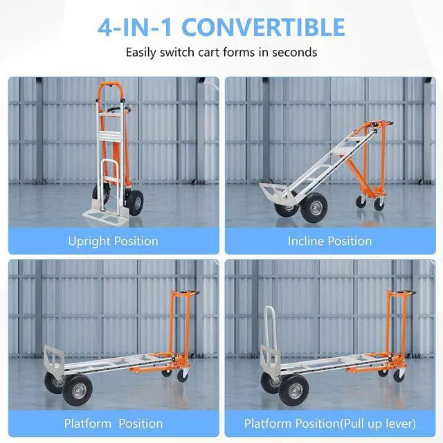 LOAD CAPACITY: Our aluminum hand truck is constructed of reinforced aluminum alloy and carbon steel frames to ensure that they are lightweight, rust-resistant and durable enough to withstand multiple heavy-duty jobs and extended use. It also comes with an extendable bracket to prevent the load from falling off when the trolley is moved. Maximum upright dolly loading is 600 LBS, and maximum flatbed dolly loading is up to 1000 LBS