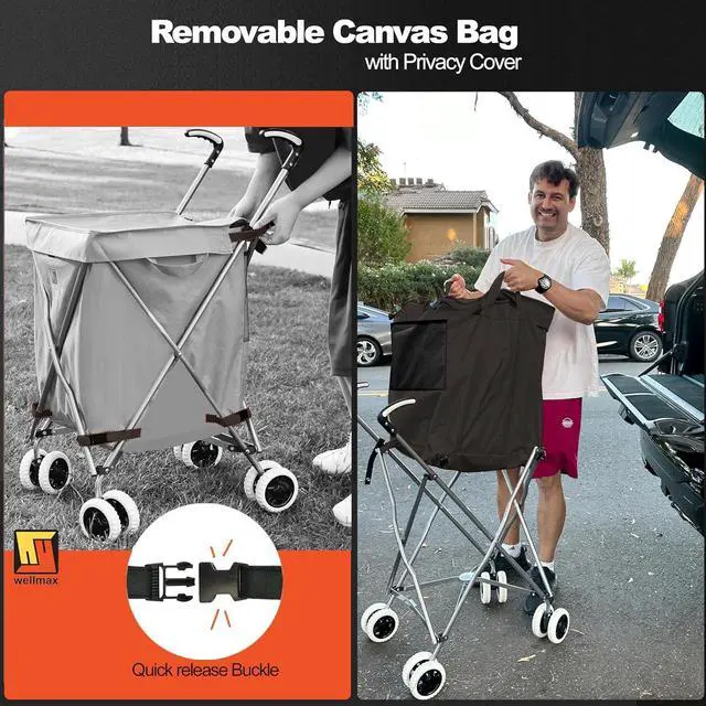Conveniently Removable Canvas Bag with Privacy Cover - The detachable bag is a snap to remove for your convenience and portability. It's specially designed to ensure privacy and prevent small items from slipping out, setting it apart from conventional metal shopping carts. Additionally, the canvas bag is machine washable (cold water only, no bleach), making it easy to keep clean and fresh after repeated use.