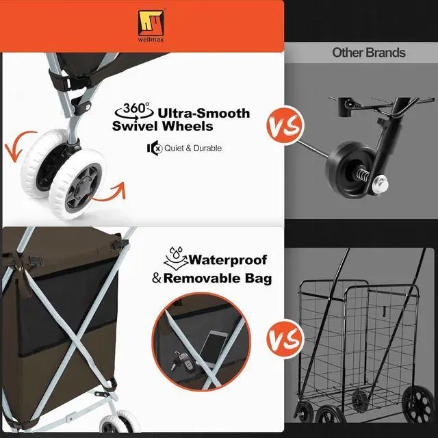 Practical Back Mesh Pouch: Our grocery cart features a rear grid design that allows you to conveniently stash small personal items like wallets, jackets, umbrellas, and more. Enjoy easy access and secure storage right at your fingertips.